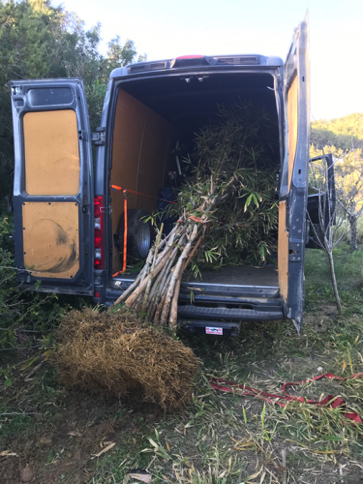 This is a Bamboo I seeded in Ibiza about 10 years ago ..... there it would not grow as good and fast as the bamboos grow here in Andalucia. So I picked it up in Ibiza and transplanted it here at Bambu Espanña. I am hoping to see a big boost in growth next year. Here some pictures of its development in Ibiza ... the transplant and journey and of its present state of development after replanting. Sadly i had to cut all the big branches down to sise so it would fit into my Van.